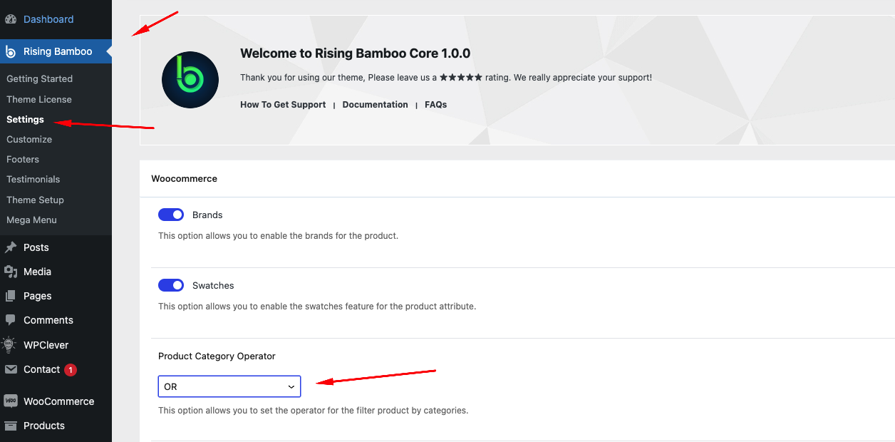 From your **WP Dashboard,** Go to <mark style="color:green;">**Rising Bamboo**</mark> → <mark style="color:green;">**Settings**</mark> → <mark style="color:green;">**WooCommerce**</mark>