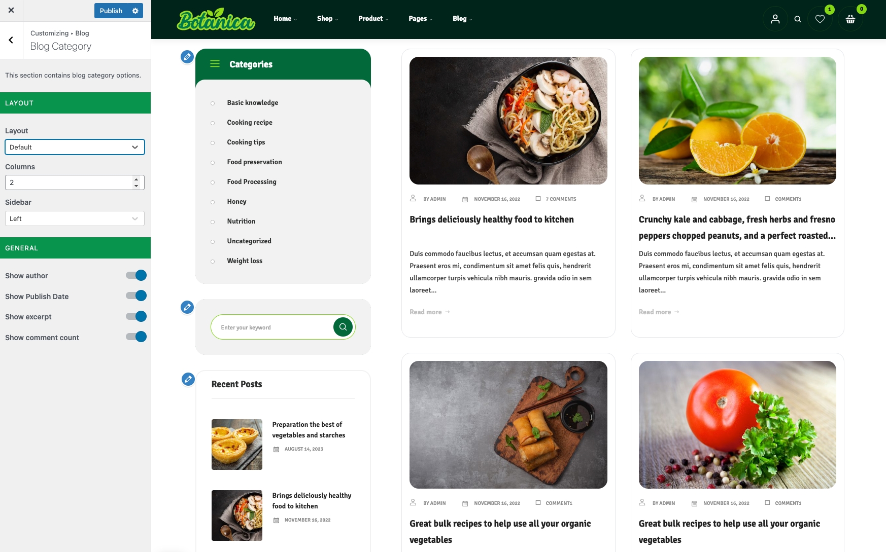 Columns: You can use this option to customize the number of blog items that appear in each row.