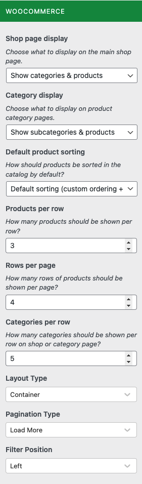 From the WP Customize Panel, go to WooCommerce → Product Catalog.