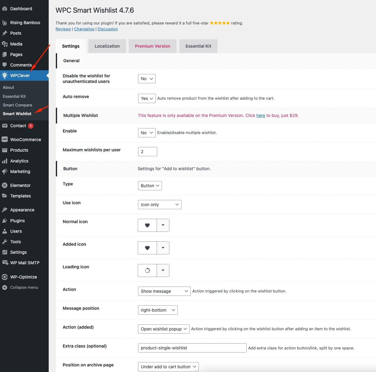 Step 1: From your WP Dashboard, Go to WPClever → Smart Wishlist.