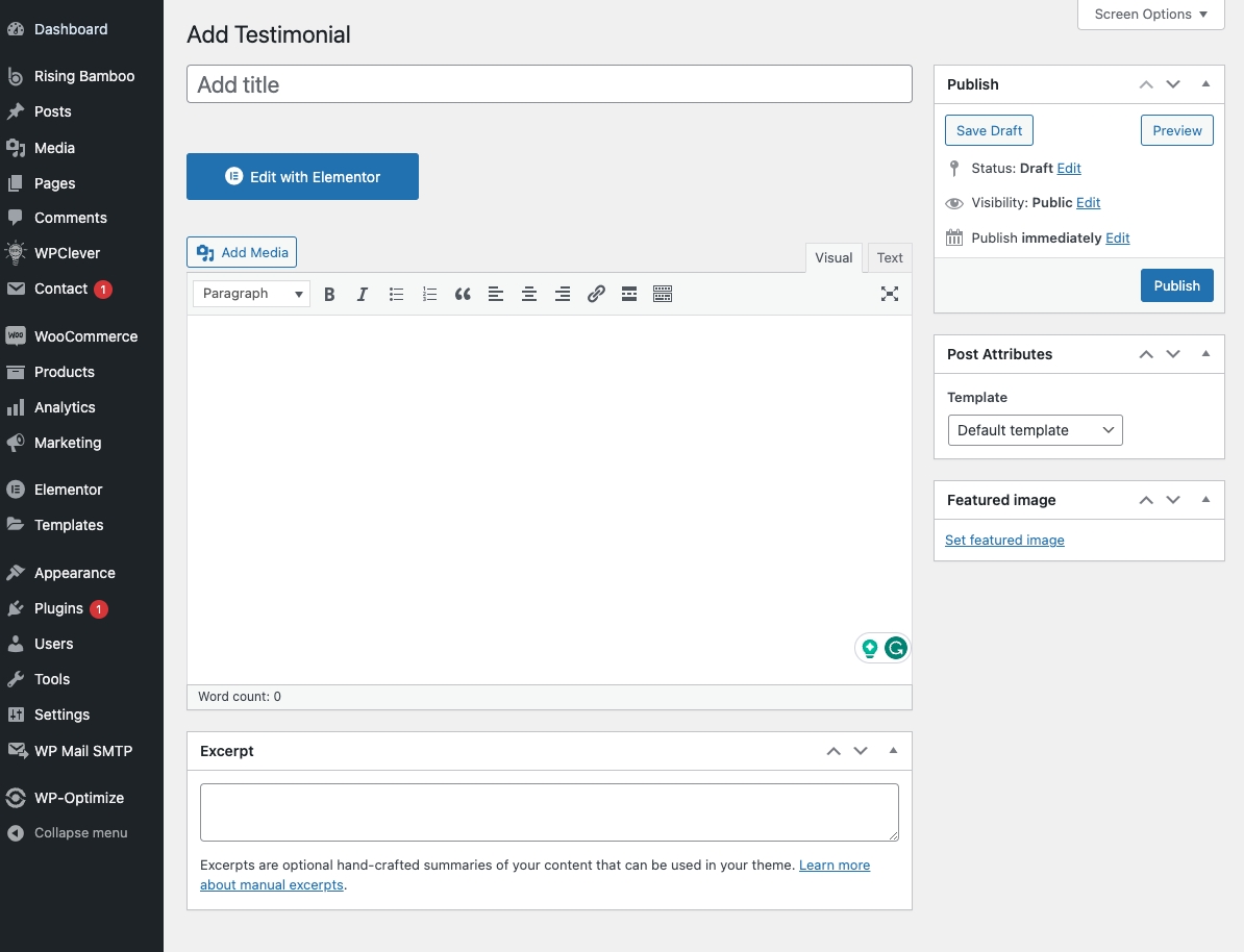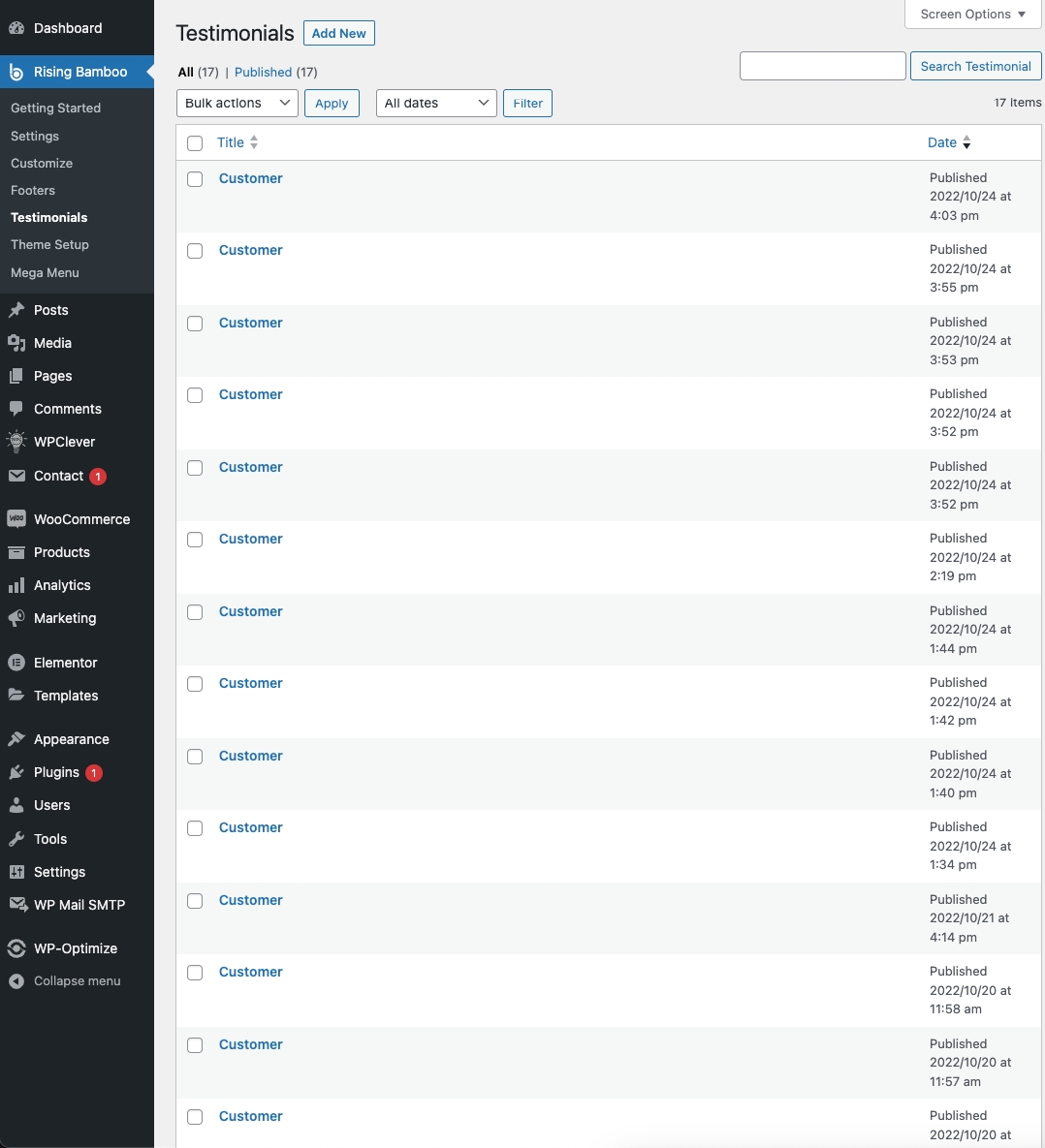 From your WP Dashboard, Go to Rising Bamboo → Testimonial.
