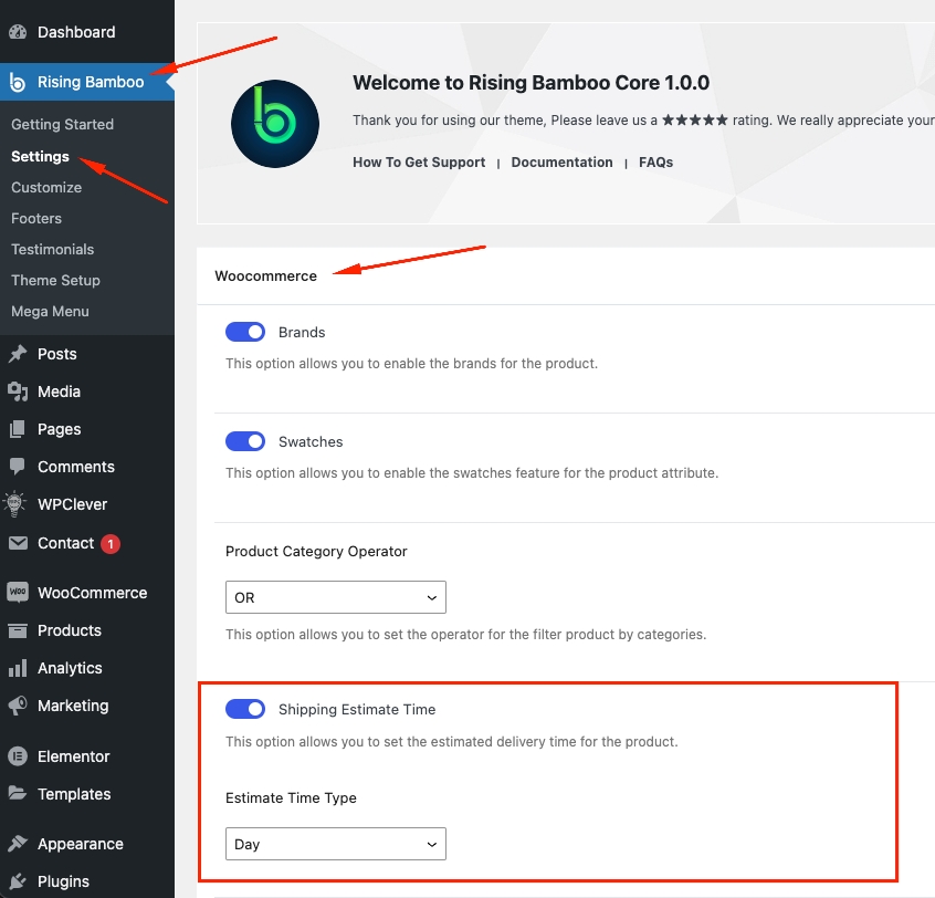 From your WP Dashboard, Go to Rising Bamboo → Setting → WooCommerce