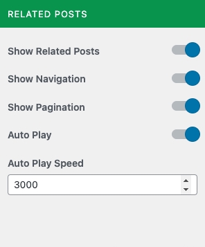 This is the setting to customize the Related Posts block on the Blog Detail page. Customization settings are intuitively named and updated in real-time without requiring saving.