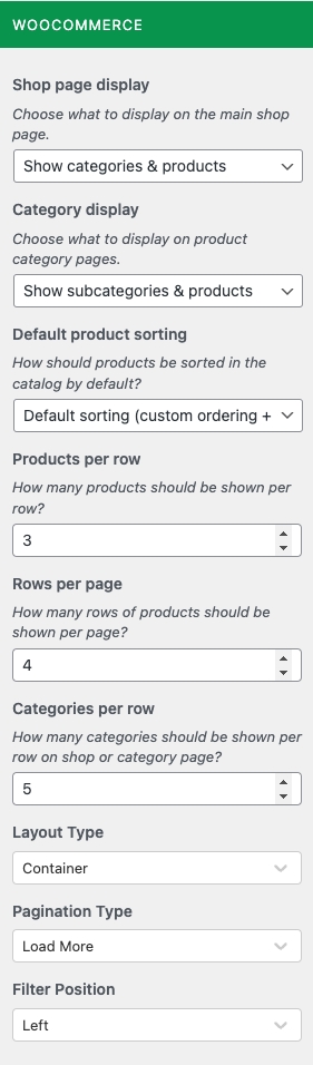 Pagination Type: Pagination numbered, Load more button, Infinity scroll (As you scroll, the products load more automatically)