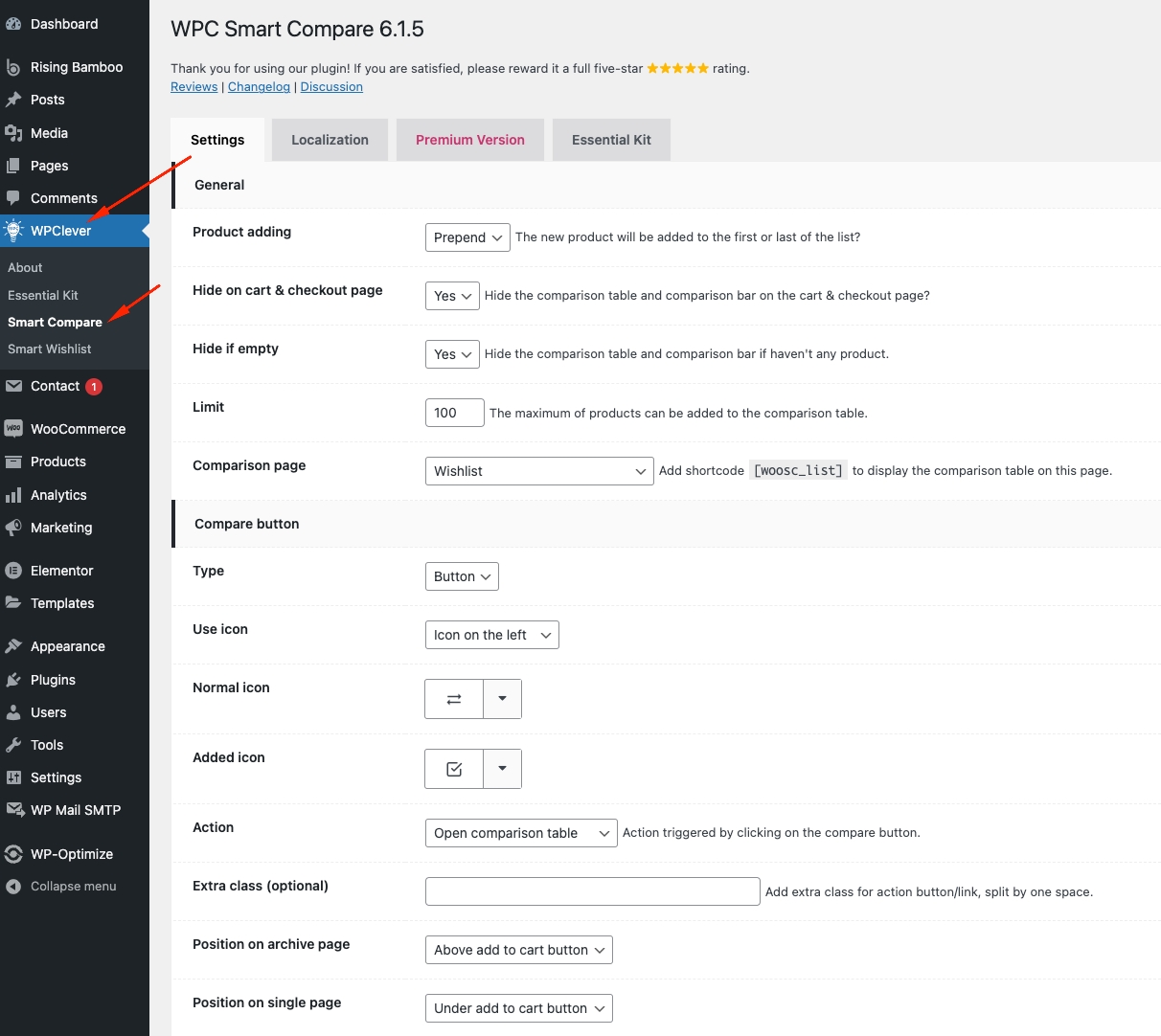 Step 1: From your WP Dashboard, Go to WPClever Smart Compare.