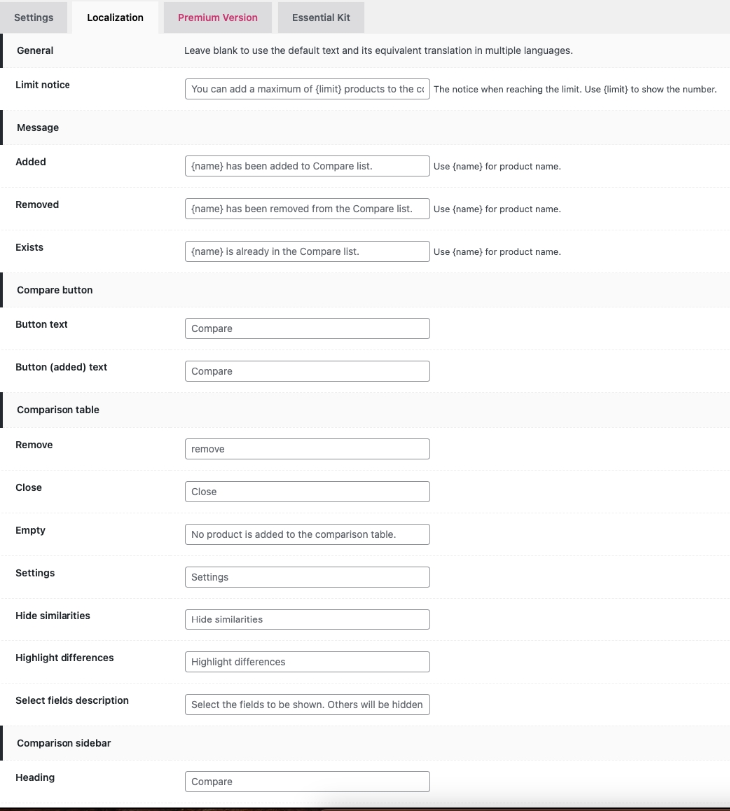 Step 4: Click Update Options after finishing your setup. Step 5: Move to the Localization tab; here, you can type in your own language displayed in the front-end for all words and phrases and instruction text.