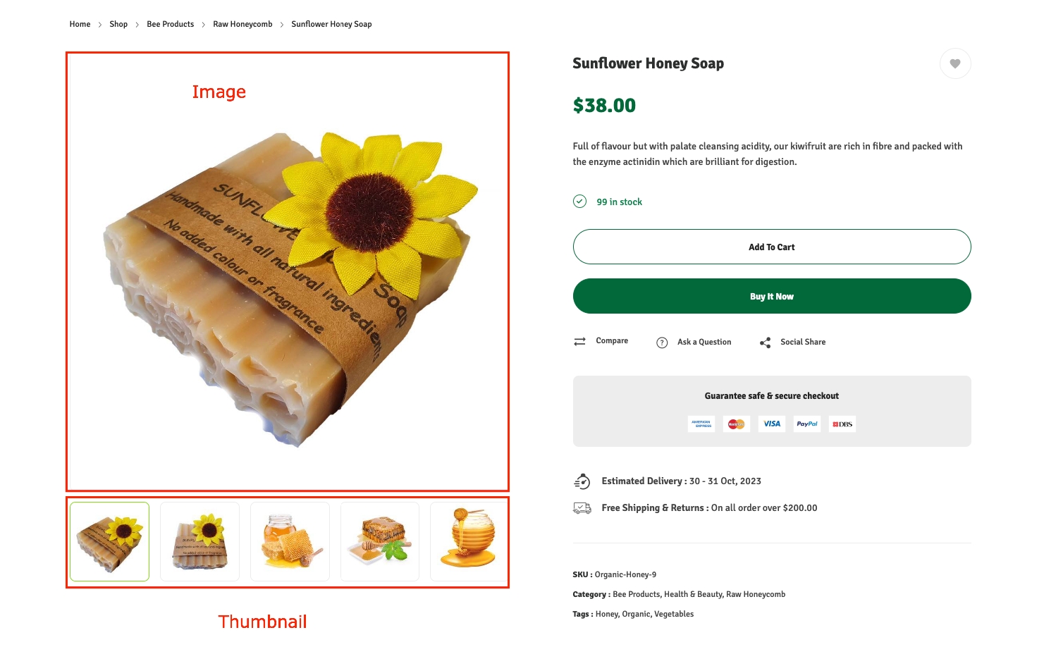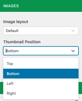 This option changes the style of the product image and the position of the thumbnail on the Product Detail page.