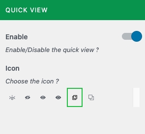 This option allows you to customize the Quick View icon and style in the Product box when hovering over it.