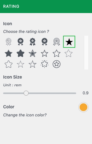 This option allows you to customize the Rating icon and style in the Product box, Product Detail Page.