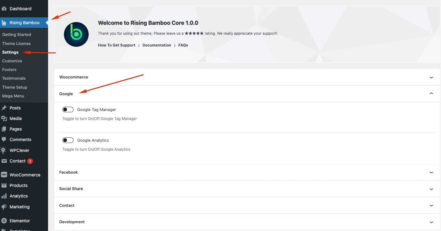 From your WP Dashboard, Go to Rising Bamboo → Settings → Google