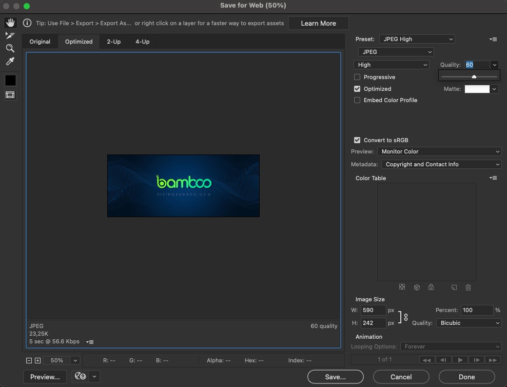 In the screenshot below, I’ve highlighted the image quality toggle bar. You’ll want to adjust the image to the lowest file size possible while keeping an eye out for image quality.