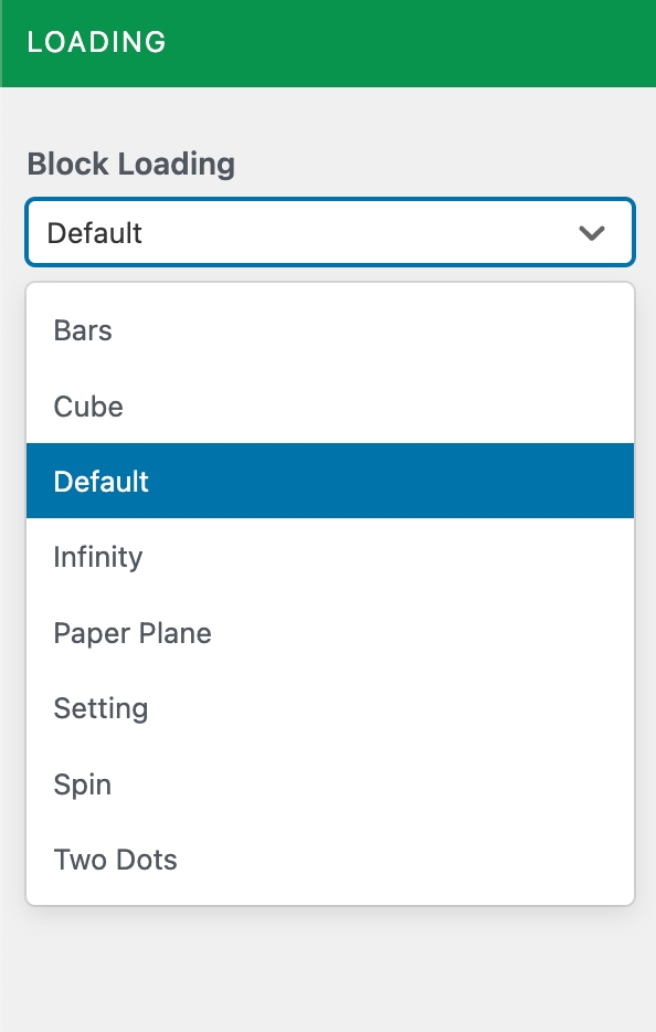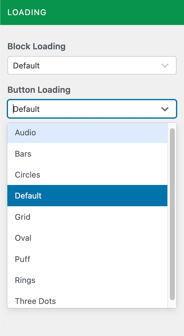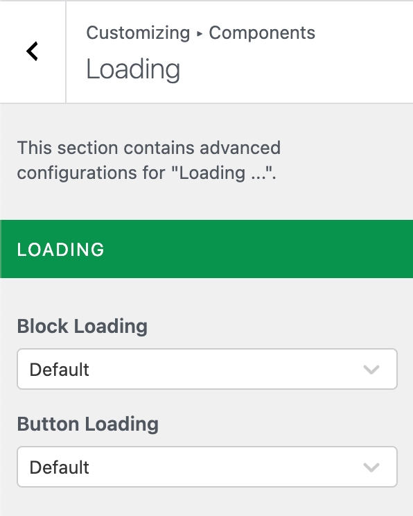 This configuration enables you to modify the "Loading" icon animation in buttons and blocks.