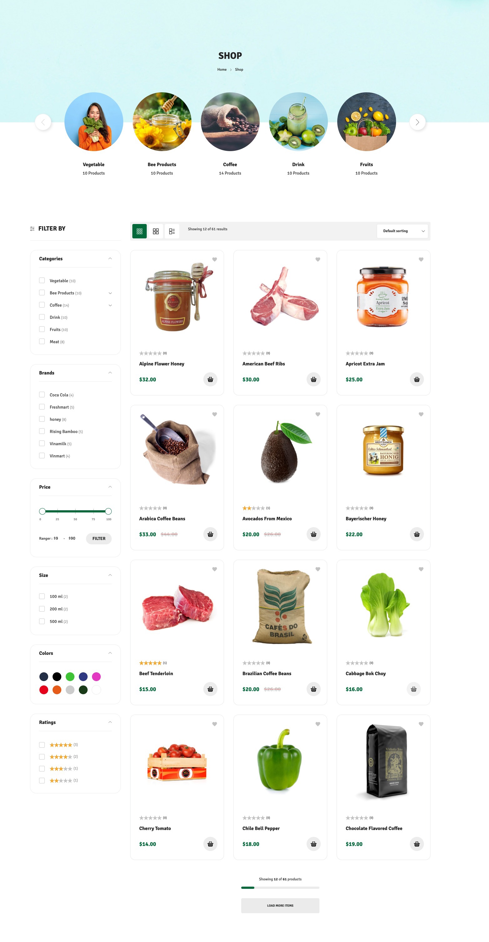 Pagination Type: Pagination numbered, Load more button, Infinity scroll (As you scroll, the products load more automatically)