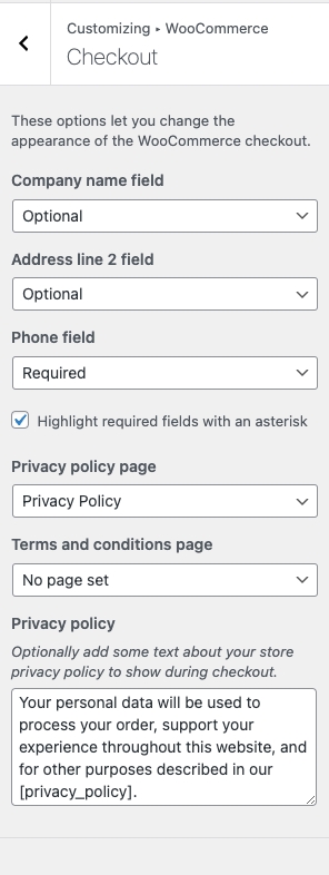 These options let you change the appearance of the WooCommerce checkout.